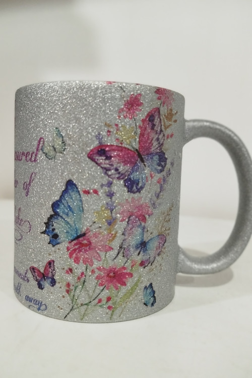 ماگ اکلیلی خارجی طرح پروانه ها و گلها با متن انگلیسی
